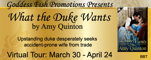 Today is the first day of my March/April blog tour for What the Duke Wants. The tour is organized by Goddess Fish Promotions.